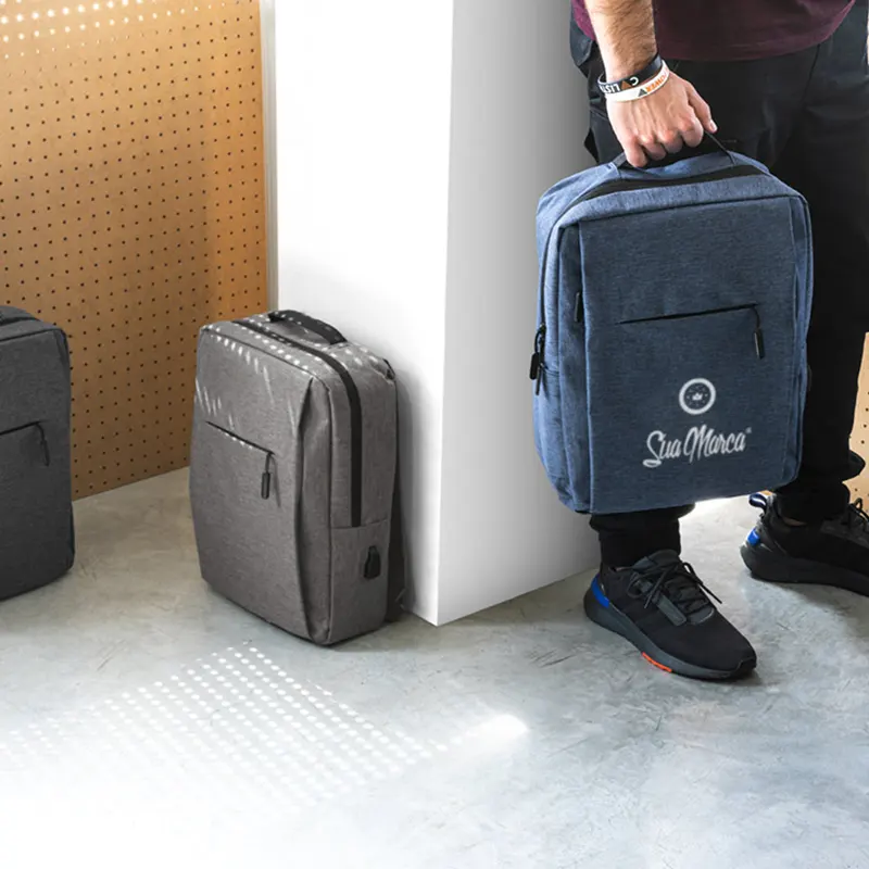Mochila para notebook personalizada em material resistente 300D de alta densidade com design moderno e funcional Ideal para transportar laptops de até 15,6 polegadas com segurança Conta com compartimento principal espaçoso forrado e divisória almofadada para maior proteção Além disso possui diversos bolsos internos para organização eficiente Possui também bolso frontal de fácil acesso e dois bolsos laterais para garrafas ou acessórios Conforto garantido com alças ajustáveis e parte posterior almofadada Capacidade de até 15 litros Dimensões 300 x 420 x 120 mm Perfeita para o dia a dia trabalho estudos ou viagens.