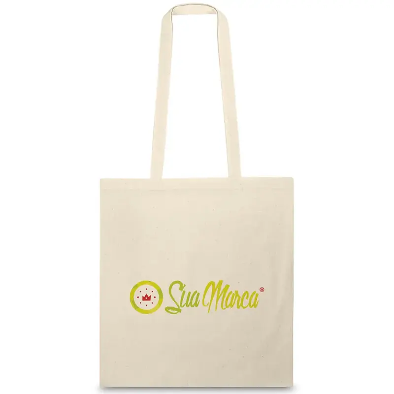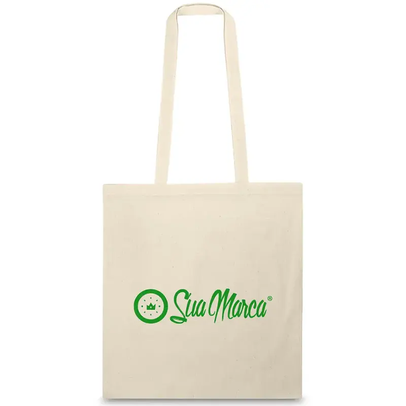 Sacola personalizada confeccionada em algodão puro de alta qualidade com gramatura de 100 g por metro quadrado proporcionando leveza e resistência ideal para o dia a dia. Dimensões amplas de 370 por 410 milímetros perfeitas para carregar diversos itens com praticidade. Possui alças confortáveis de 75 centímetros garantindo um transporte seguro e ergonômico. Produto sustentável reutilizável e versátil ideal para compras eventos brindes e uso diário.