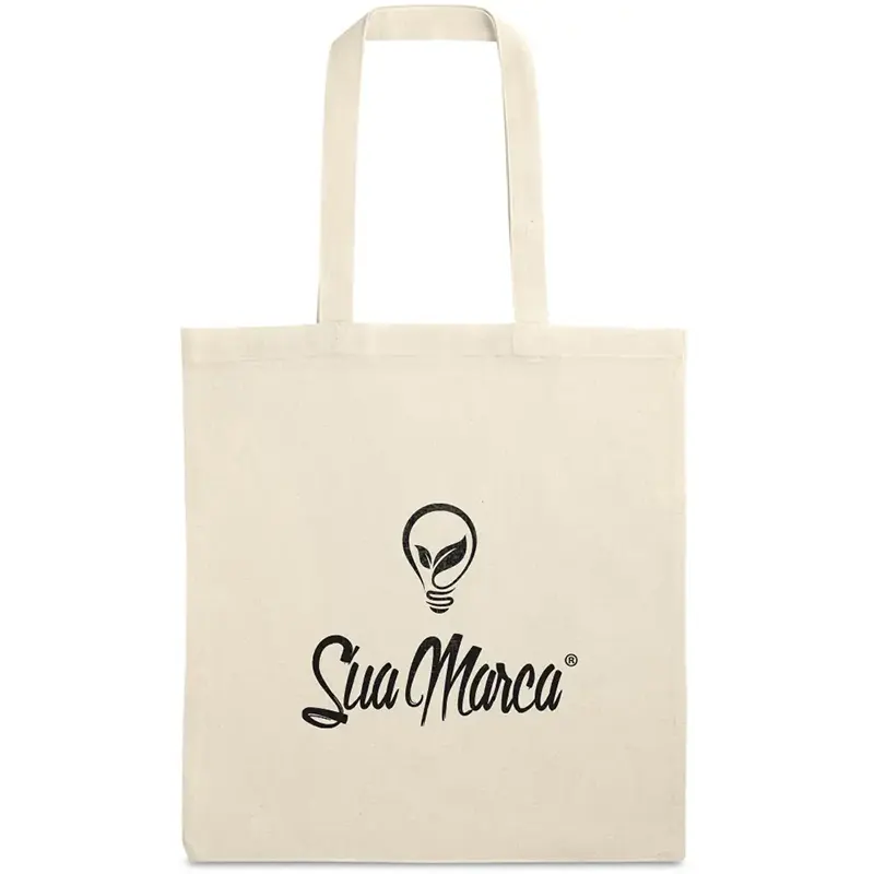 Sacola ecológica personalizada confeccionada em algodão 100 por cento material resistente e duravel ideal para o dia a dia com tamanho amplo de 375 x 415 mm, alças confortaveis de 60 cm perfeita para compras eventos e brindes sustentáveis escolha ecológica e estilosa.