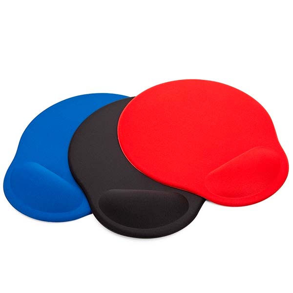 - Mouse pad de material neoprene com parte inferior emborrachada anti deslizante e apoio para a mão revestido interno de algodão.