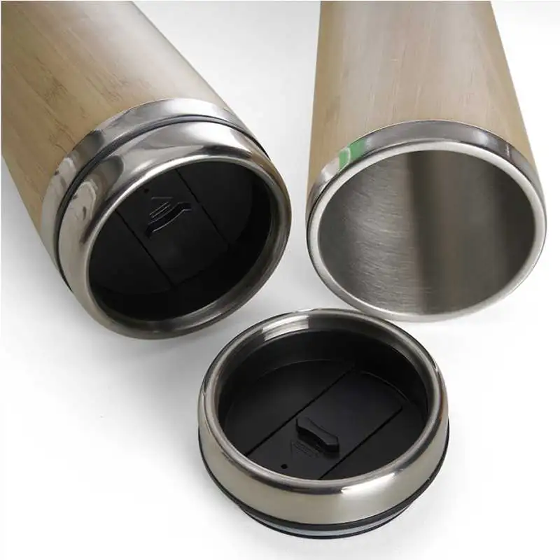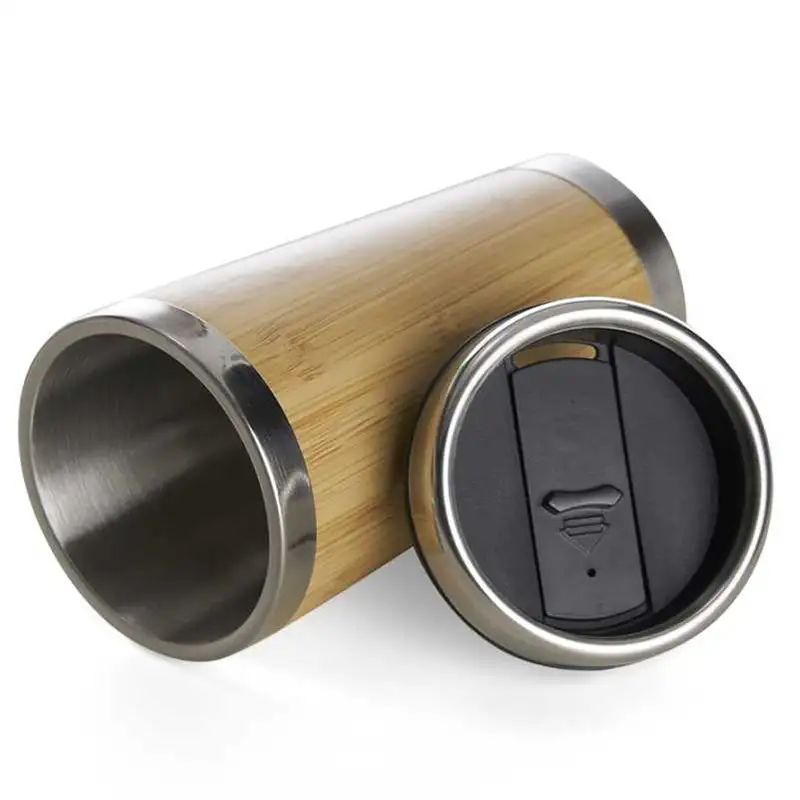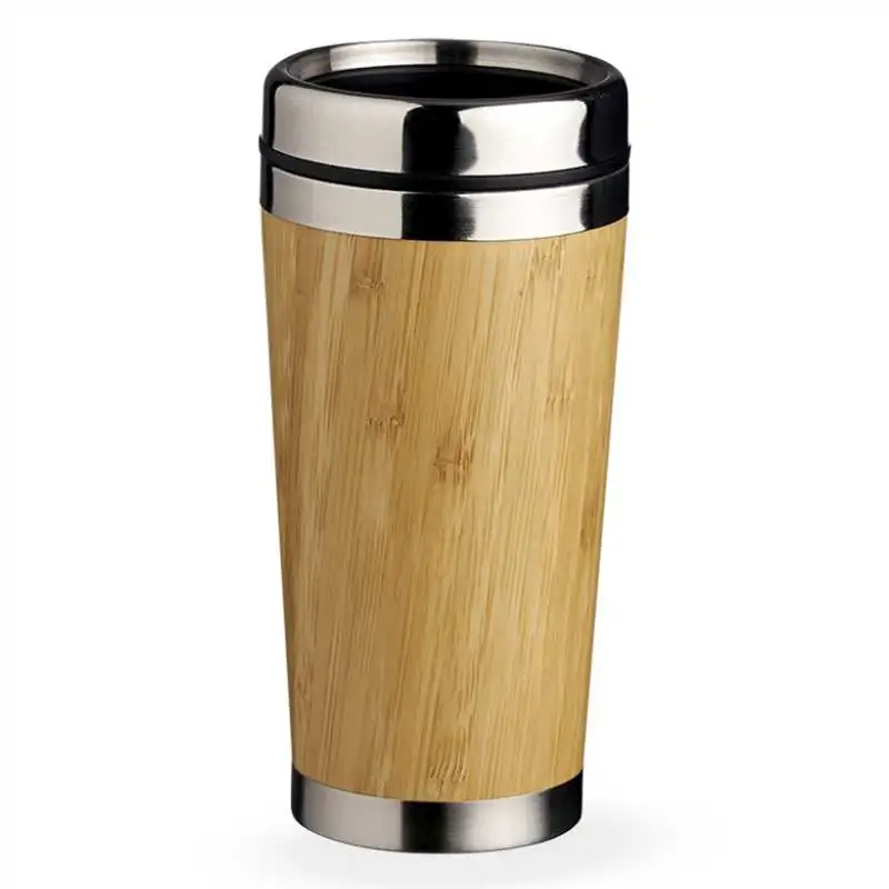 Copo Bambu com capacidade para 500ml, parte interna em inox.
